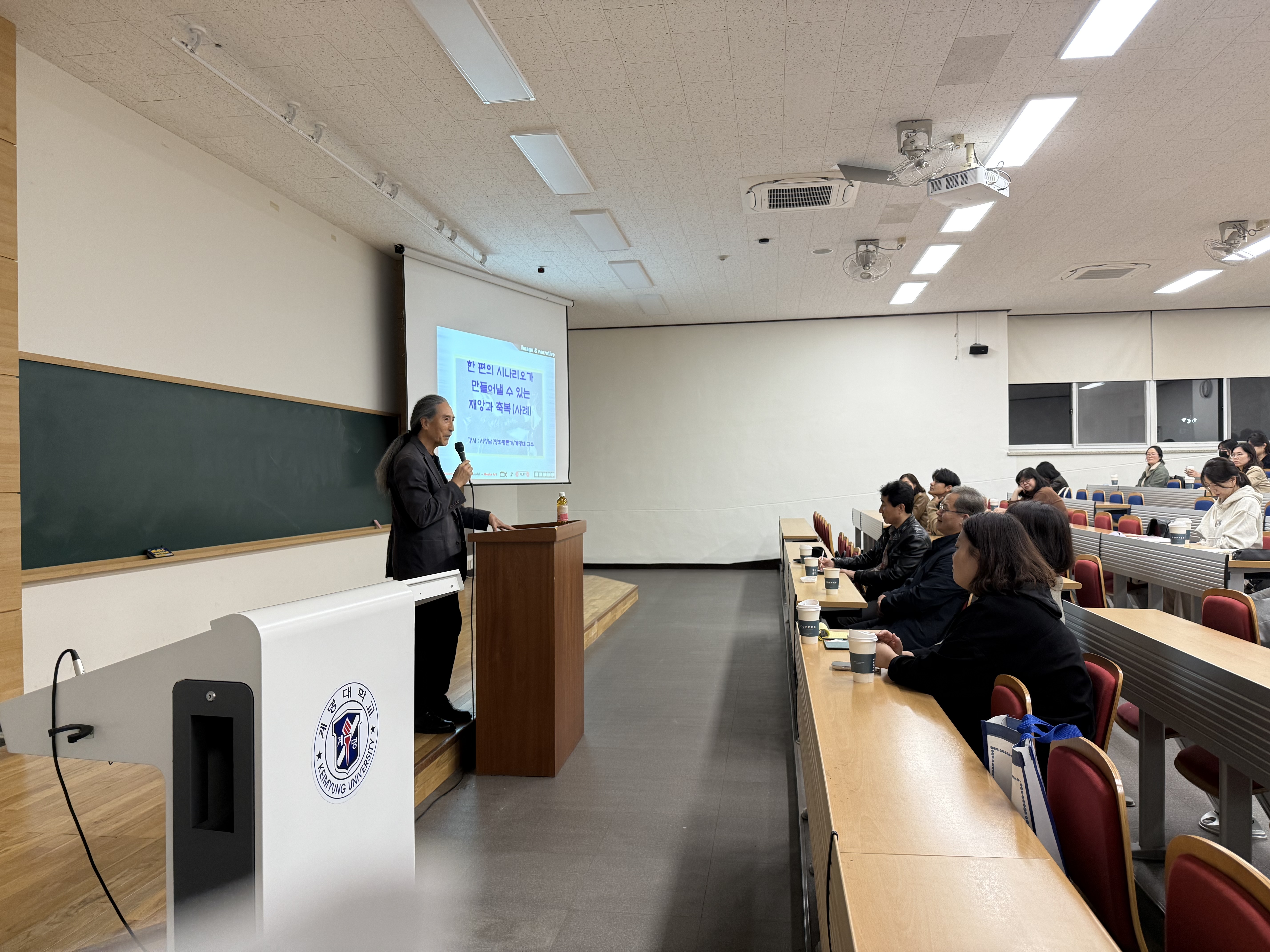 이날 강의의 주제는' 한편의 이야기가 만들어낼 수 있는 재앙과 축복 '으로, 계명대학교 언론영상학과 '서정남' 교수님의 강의로 세미나가 진행되었습니다.